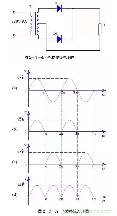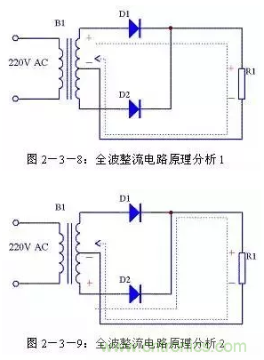 全波整流電路每個整流二極管上流過的電流只是負(fù)載電流的一半,比半波整流小一倍。