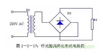 橋式整流電路每個整流二極管上流過的電流是負(fù)載電流的一半,與全波整流相同。通常情況下橋式整流電路都簡化成圖2-3-17的形式。