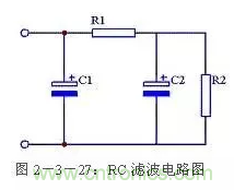使用兩個電容和一個電阻組成RC濾波電路,又稱π型RC濾波電路。見圖2-3-27所示。這種濾波電路由于增加了一個電阻R1,使交流紋波都分擔(dān)在R1上。R1和C2越大濾波效果越好,但R1過大又會造成壓降過大,減小了輸出電壓。一般R1應(yīng)遠(yuǎn)小于R2。