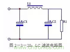 與RC濾波電路相對的還有一種LC濾波電路,這種濾波電路綜合了電容濾波電路紋波小和電感濾波電路帶負(fù)載能力強(qiáng)的優(yōu)點。其電路圖見圖2-3-28。
