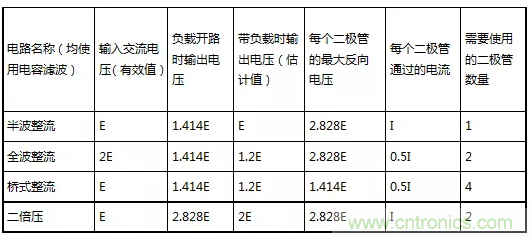 注:U為負(fù)載兩端電壓值;I為負(fù)載上電流值;e為整流二極管壓降,一般取0.7V。