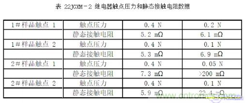 由表2數據可以得知,隨著觸點壓力的衰退,觸點間的靜態接觸電阻明顯變大。