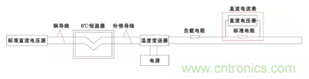 在變送器輸入端放置一個(gè)溫度計(jì),測(cè)得冷端溫度值,由分度表查得此溫度電勢(shì)值Eω,再根據(jù)熱電偶分度表的電勢(shì)值E0,由毫伏信號(hào)發(fā)生器輸出(E0-Eω)值,即模擬熱電偶的輸出,測(cè)量熱電偶溫度變送器4-20mA電流輸出值,計(jì)算變送器的測(cè)量精度。這種方法存在環(huán)境溫度變化和溫度計(jì)測(cè)量冷端誤差兩方面,無法消除這兩方面帶來的測(cè)量誤差。因此,通常作為現(xiàn)場(chǎng)零時(shí)比對(duì)測(cè)量時(shí)使用,不做為溫度變送器檢定校驗(yàn)使用。