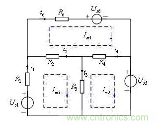 即為該電路的網孔方程,顯然,由此三個方程,可求解網孔電流。