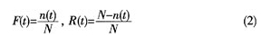 產品在一定時間內的可靠度和累積失效概率可以通過大量試驗來確定。例如取N個產品進行試驗,若在規(guī)定時間內有n個失效,則: