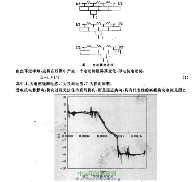 火花使換向區域附近的空氣介質電離,在空氣中形成帶電粒子,形成電磁干擾;