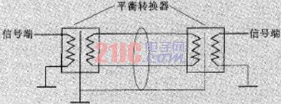 如果信號傳輸線兩端的屏蔽層都接地,必然形成接地回路。當該回路受到其它設備的電磁輻射干擾時,在電纜的屏蔽層必然會出現感應電流,以致產生嚴重的干擾噪聲,形成地回路噪聲干擾,如圖4所示。