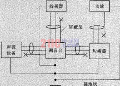 為保證系統不出現地環路結構,要求各設備間只能有一條接地導線互連,在要求不嚴謹的場合。可以讓不平衡設備懸浮,通過音頻信號線共用下一級設備的地線。也就是采用鏈形接地,但這種鏈形接地的級數不能太多,一般不超過2級。否則將使噪聲嚴重增加。[page]