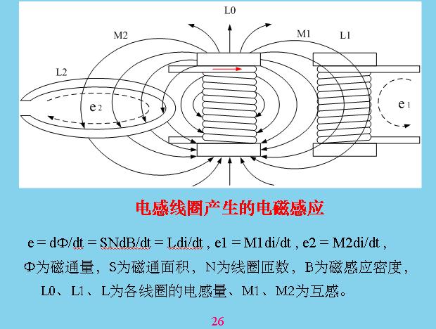 下面講磁場感應與干擾。磁場只要有電容從導體里面流過就會產生磁場,磁場這個東西因為我們摸不到,所以現(xiàn)在我們都是用磁力線表示,我們可以判別它。這個磁場如果穿過周邊的電路,或者是其他電感線圈就會產生電子感應,這就相當于一個有電流流過的電感線圈,會產生磁場,這個磁場對另外一個線圈也會產生感應電壓。線圈對應里面任何一個線路也會產生感應電壓。所以電磁感應就是因為磁力線穿過閉合回路而產生的,你要減少電壓的大小,就要減少干擾的大小,一個就是減少它的磁通量,感應電壓與磁通量有關,減少磁通量只能減少面積,減少圈圈的面積,或者減少磁場強度,磁場強度一般很難改變,你只能改變面積。另外,剛才說的干擾是位能改變才會干擾,如果只是一個通到位能不變,它不會干擾,永遠是一個1安培,位能不變不會干擾。干擾是位能不斷改變,一下子變成1安培,一下子變成2安培,一下子變成3安培,一下子又變成負的安培。