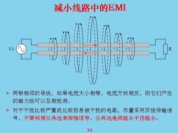 減少線路中的干擾,就是信號線或傳輸線,兩根線靠得越近,一個電流往這邊流,一個電流往那邊流,兩個電磁場會抵消掉。也就是說在回路里面產生的感應面積相對越小越好。