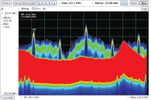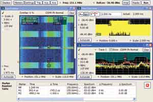 隨著通信系統(tǒng)的干擾特點(diǎn)發(fā)生變化,測(cè)試設(shè)備也在變化。模擬電路以前實(shí)現(xiàn)的功能,現(xiàn)在可以以數(shù)字方式實(shí)現(xiàn),測(cè)量速度不斷提高,我們可以更快地獲得測(cè)量結(jié)果。泰克公司推出的實(shí)時(shí)頻譜分析儀可以即時(shí)查看非常寬的頻譜跨度,而不會(huì)丟失頻段中的信息,從而可以發(fā)現(xiàn)、捕獲并測(cè)量對(duì)傳統(tǒng)技術(shù)極具挑戰(zhàn)性的瞬態(tài)峰值。