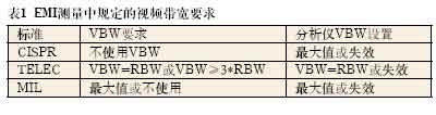 在大多數(shù)EMI測(cè)量中,視頻濾波器指定為關(guān)閉,或視頻濾波器指定為至少比測(cè)量的指定RBW高出三倍(參見(jiàn)表1)。