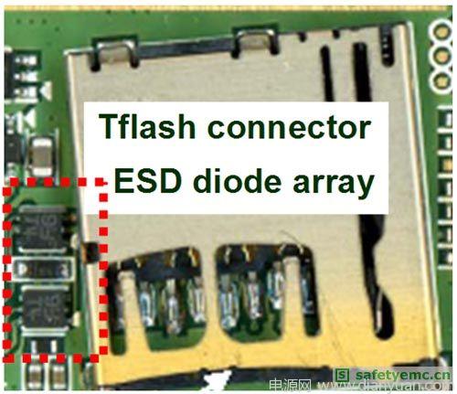 圖2:ESD二極管陣列保護的Tflash連接器