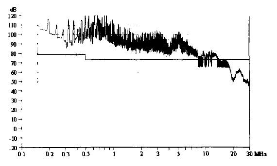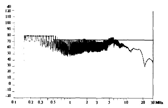 圖6進線電抗器+EMI濾波器后所測的傳導騷擾