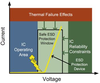另外,先進的系統級芯片(SoC)設計都是采用幾何尺寸很小的工藝制造的。為了優化功能和芯片尺寸,IC設計人員一直在不斷減少其設計的功能的最小尺寸。IC尺寸的縮小導致器件更容易受到ESD電壓的損害。