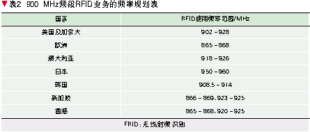表1為國際標準ISO/IEC 18000標準系列中推薦RFID設備使用的頻率范圍。