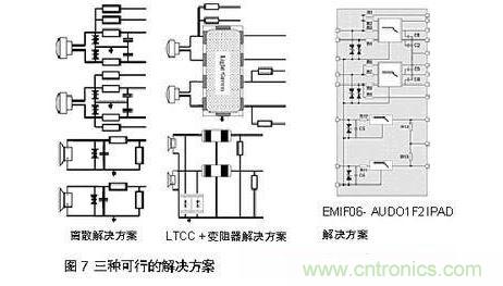 EMI濾波器盡可能地接近EMI干擾的切入點,這樣盡可能保證音頻質(zhì)量。如圖6。