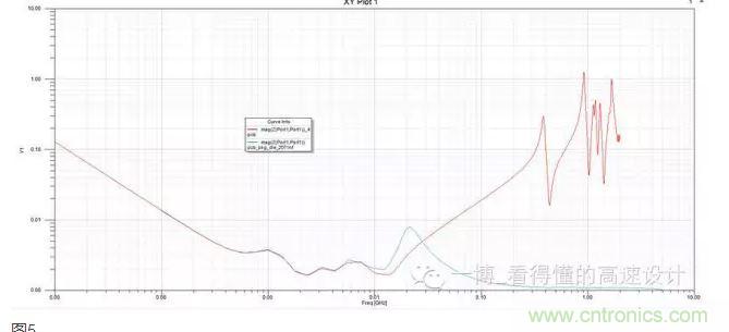 第四條,封裝電容和Die電容這里不做太多描述,只給出一個(gè)實(shí)際案例,圖5是某芯片,Die電容大小為2071NF。能看到Die電容起作用之后,30M以上的PDN阻抗基本完全被壓下來(lái)了。也就是說(shuō),30M以上的電源噪聲,進(jìn)入芯片之后被Die電容濾除。系統(tǒng)設(shè)計(jì)時(shí)不需要考慮這個(gè)頻段以上的濾波。