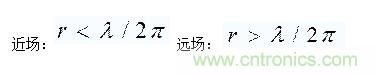 根據(jù)兩類基本源的場(chǎng)隨1/r(場(chǎng)點(diǎn)至源點(diǎn)的距離)的變化來劃分遠(yuǎn)近場(chǎng),兩類源在遠(yuǎn)近場(chǎng)的場(chǎng)特征及傳播特性均有所不同。故遠(yuǎn)近場(chǎng)的劃分滿足以下原則: