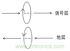 如何用右手定則來解釋信號層與地層相鄰時磁通對消效果,解釋如下: