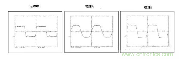 下面是用示波器分別量測磁珠輸出端的波形圖