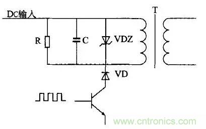 開關管或 二極管在開通和關斷過程中,由于存在變壓器漏感和線路電感,二極管存儲電容和分布電容,容易在開關管集電極、發射極兩端和二極管上產生尖峰電壓。通常情況下采用RC/RCD吸收回路,RCD浪涌電壓吸收回路如圖2所示。