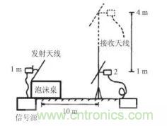 現(xiàn)將同一信號源分別放置在泡沫桌(如圖 6 所示)和木桌(如圖 7 所示)上,接收天線在距離信號源 10 m 處分別測量輻射騷擾。
