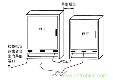 (2)被測設備置于金屬平面上,同金屬平面絕緣間隔10cm左右;接模擬負載或者暗室外端口的線纜應該注意其同金屬平面的絕緣性;