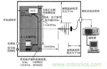 圖4:CISPR25標準要求的輻射發射測試布置圖