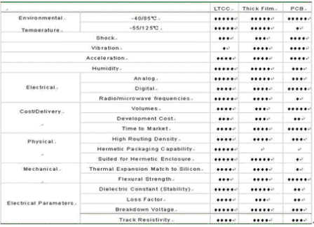 f.與薄膜多層布線技術具有良好的兼容性,二者結合可實現更高組裝密度和更好性能的混合多層基板和混合型多芯片組件;
