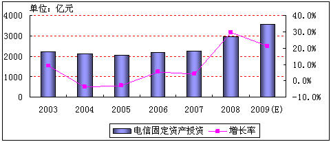 圖1:2003-2009年中國電信固定資產(chǎn)投資情況