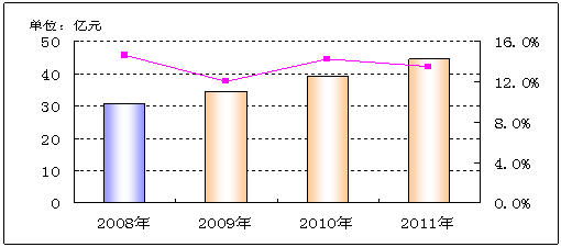 圖3:2009-2011年中國通信測試市場規(guī)模預(yù)測
