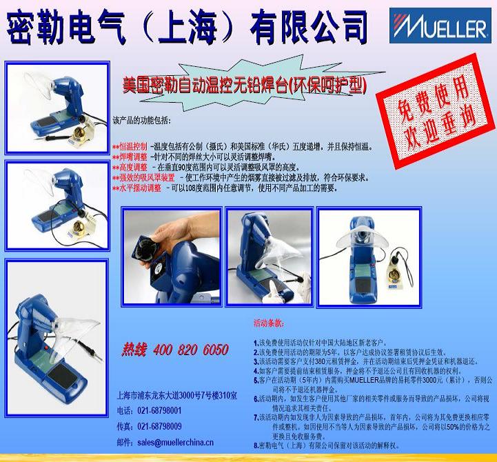 5.客戶在活動(dòng)期(5年內(nèi))內(nèi)需購買MUELLER品牌的易耗零件3000元(累計(jì)),否則公司將不予退還機(jī)器押金。