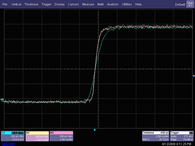基于上面的原則,我們就很好理解為什么有些客戶(hù)會(huì)用6GHz的示波器測(cè)試100MHz的時(shí)鐘,但又用6GHz的示波器測(cè)試3.125Gbps的XAUI信號(hào)。 請(qǐng)大家忘記所謂的3-5倍這個(gè)關(guān)系,太不嚴(yán)謹(jǐn)?shù)谋磉_(dá)了!