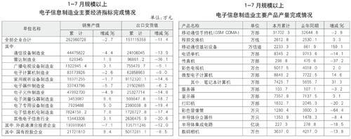 1-7月規(guī)模以上電子信息產(chǎn)業(yè)主要指標(biāo)概覽