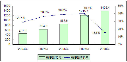 - 2008年市場(chǎng)增速跌入近幾年低谷
