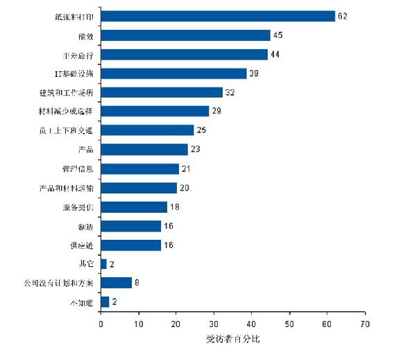 大多數企業都集中在相對容易、方便并熟悉的方面來提高能效、減少溫室氣體排放,如在節約用紙,減少差旅及IT基礎設施上。這些舉措有時能解決企業的實質問題,有時卻不能解決實質問題。但本質上,這些舉措都與優先次序沒有多大關系。IT企業需在能效和減少溫室氣體排放方面采取更為綜合的舉措。