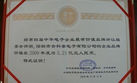 - 合科泰獲得“中華電子企業最有價值品牌”獎