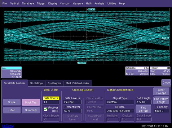 高速串行芯片往往嵌入了接收均衡器,通過示波器的均衡模擬技術復現信號,可以反映出系統的真實性能。