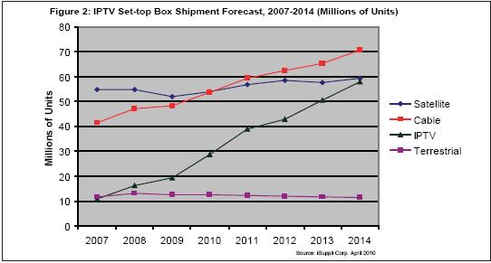 - 預計2014年銷往IPTV市場的機頂盒將增長到5800萬臺