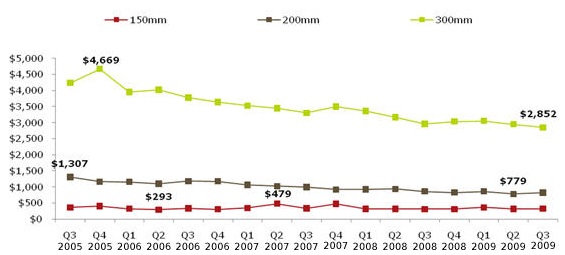 - 300mm硅片在2009 Q2和2009 Q3時分別下降3%及4%