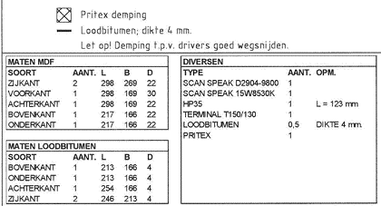 為了避免箱體共振,對兩側(cè)箱板和上、下面板使用22mm厚的中密度纖維板(MDF),前面板則使用30mm厚的MDF。6塊箱板的內(nèi)表面最好全部貼上4mm厚的鉛皮(但較貴),也可貼上相同厚度的瀝青油毛氈進行聲阻尼。在箱板開口處應(yīng)仔細(xì)地將阻尼材料剪掉,以免妨礙驅(qū)動單元和出聲管的安裝。