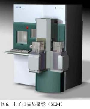 首先,它擺脫了照明光源,檢測結果不會受到類似變色、厚度不均等各種層面所帶來的物理因素的影響;其次,電子束的分辨率極高。因為它的檢測單位是電子,電子要比微波以及任何尺寸的顆粒或缺陷都要小得多;再次,電子是帶有電性的電荷,所以它可以被用于分析材料的電性或電組織成分,這被稱作電壓對比度圖像,經常被用于檢測類似開閉鎖等電子電路缺陷和通孔蝕刻不足等材料缺陷。電子束檢測設備一般有KLA-Tencor和HMI公司的Escan系列(如圖5所示)。