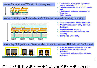 另一個(gè)比較熱門的領(lǐng)域就是3D集成和硅通孔技術(shù)(TSV),它們將為芯片帶來(lái)更小的尺寸、更低的能耗以及更強(qiáng)大的功能性,是半導(dǎo)體技術(shù)下一步發(fā)展的契機(jī)(圖2)。