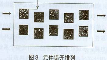 交錯(cuò)分散排列。在布板設(shè)計(jì)進(jìn)行元件布局時(shí),應(yīng)將發(fā)熱元器件與一般器件及溫度敏感器件區(qū)分開,發(fā)熱器件周圍應(yīng)留有足夠的散熱氣體流動(dòng)通道,發(fā)熱元件應(yīng)錯(cuò)開分散排列,如圖3所示。這與通常布局時(shí)的整齊劃一排列恰好相反,有利于改善散熱效果。[page]
