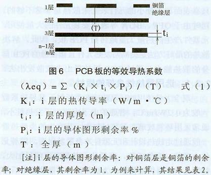 評(píng)價(jià)PCB的散熱能力,就需要對由導(dǎo)熱系數(shù)不同的各種材料構(gòu)成的復(fù)合材料一一PCB用絕緣基板的等效導(dǎo)熱系數(shù)(九eq)進(jìn)行計(jì)算。PCB板的等效導(dǎo)熱系數(shù)見圖6所示。