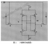 假設準備往圖2的6T存儲單元寫入“1”,先將某一組地址值輸入到行、列譯碼器中,選中特定的單元,然后使寫使能信號WE有效,將要寫入的數(shù)據“1”通過寫入電路變成“1”和“0”后分別加到選中單元的兩條位線BL,BLB上,此時選中單元的WL=1,晶體管N0,N5打開,把BL,BLB上的信號分別送到Q,QB點,從而使Q=1,QB=0,這樣數(shù)據“1”就被鎖存在晶體管P2,P3,N3,N4構成的鎖存器中。寫入數(shù)據“0”的過程類似。