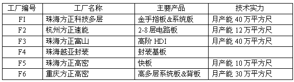 方正電路板1986年成立于珠海,目前擁有六家電路板和一所電路板研究院,產品類型覆蓋快板、高密度互連板、普通多層板(2-40層)、系統板、大型背板、金手指板等,年產能1500萬平方英尺。產品應用于通訊、移動電話、消費電子、醫療電子、工業應用、自動化控制、計算機、航空等領域。
