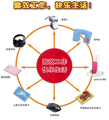 主辦方在去年“萬元獎金,回饋產業!”的活動基礎上,今年新增了“高效工作,快樂生活!”系列獎項,將提供iShuffle、移動硬盤、無線鼠標、無線耳機、攝像頭、交通卡、手機充值卡、充氣枕等精彩好禮,為中國電子社群的工作及生活增添便利與樂趣。