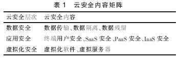 云安全架構(gòu)的一個關(guān)鍵特點是云服務(wù)提供商所在的等級越低,云服務(wù)用戶自己所要承擔(dān)的安全能力和管理職責(zé)就越多。下面對云計算安全領(lǐng)域中的數(shù)據(jù)安全、應(yīng)用安全和虛擬化安全等問題(見表1)的應(yīng)對策略和技術(shù)進行重點闡述。